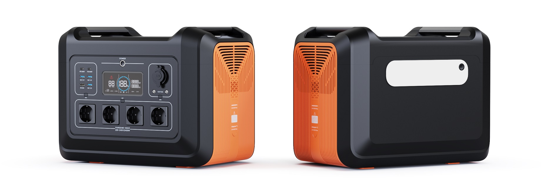 In vergelijking met draagbare power stations van 600 W, 1200 W en 1800 W heeft de draagbare powerstation van 2400 W een grotere capaciteit, tot 2232 Wh; het is uitgerust met een uitstekend batterijbeheersysteem (BMS), dat wordt beschermd door temperatuurregeling, spanningsbeveiliging, overstroombeveiliging en kortsluitbeveiligingsfuncties, het verlengen van de levensduur van de draagbare powerstations en gebruikers meer bescherming bieden.