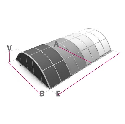 De Albixon Klasik zwembadoverkappingen worden aangeboden in 3 productiematen: