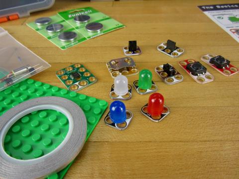 Zoals met alle Crazy Circuits kits, deze klas assemblage vereist geen lassen. De onderdelen zijn verbonden in een bouwstenen bouwomgeving via de speciale Maker Tape geleidende tape. De enige extra tools die je nodig hebt is een schaar.
