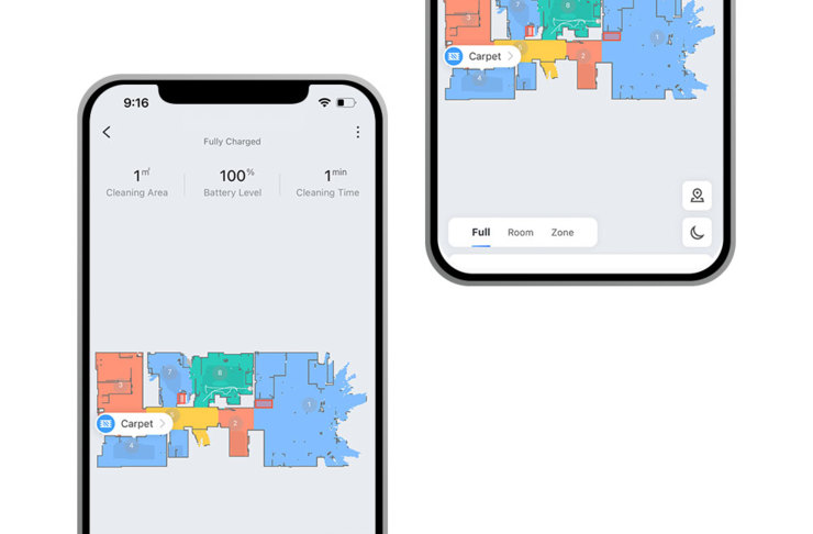 De gemaakte kaarten zijn via een app beschikbaar voor de gebruiker. Als je huishoudrobot meerdere kaarten kan opslaan, kun je op je smartphone bepalen welke kaarten dit zijn. De robotstofzuiger, of de robotstofzuiger met dweil, maakt een eerste indeling van de gescande ruimte. Via de app kan deze indeling worden aangepast aan de voorkeuren van de gebruiker. Ook zijn alle reinigingsinstellingen via de robotstofzuiger app te definiëren: waar zijn bijvoorbeeld no-go-plekken, welke plek moet intensiever worden schoongemaakt of waar moet worden gestofzuigd en welke ruimte moet worden gedweild? De fabrikanten leveren apps op maat voor de merken.
