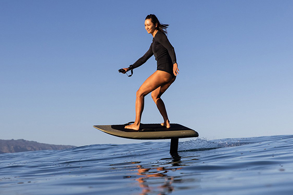 De "e" in eFoil staat voor de lithium-ionbatterij die in het bord is ingebouwd en die een elektromotor aandrijft met een propeller die voor voortstuwing zorgt. Onder de aandrijfeenheid bevindt zich een vleugel (of "folie") die voor lift zorgt. Bij voldoende snelheid genereert de vleugel voldoende lift om het board uit het water te laten komen en begin je moeiteloos voort te vliegen als een vliegend tapijt dat in poeder rijdt. Je stuurt het board door te gaan staan met je lichaamsgewicht en past je snelheid aan met een draagbare draadloze Bluetooth-afstandsbediening om het gaspedaal te bedienen. Het gevoel is uniek.