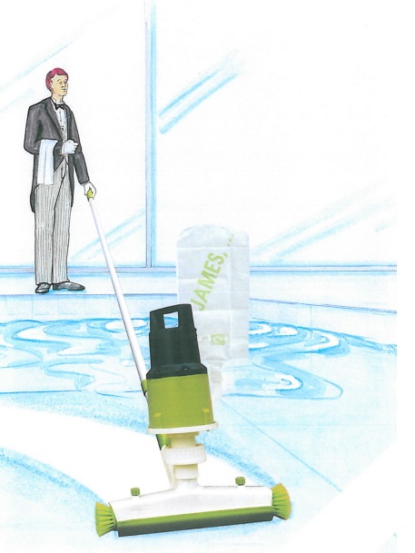 Door een telescopische stang aan de zuiger te koppelen kunt u vrij eenvoudig alle delen en hoeken van het bad bereiken. De zuiger heeft als grote voordeel dat er geen bodemzuigslang nodig is. Het vuil wordt opgevangen in een stofzuigzak van 70 Micron. De 7 m³/h klokpomp zorgt voor de zuigkracht. In tegenstelling tot andere manuele zuigers heeft de James dus een eigen pomp en hoeft u geen gebruik te maken van de zuigkracht van de normale circulatiepomp van het zwembad. Vandaar dat de zuiger kan funtioneren zonder slangen.