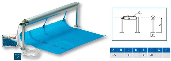 Het oprolsysteem is geschikt voor afdekkingen van 5,40 - 7,10 meter breedte en 15 meter in lengte. Bij een ovaal zwembad kan de lier in het midden van het zwembad worden geplaatst en kan de zwembadafdekking in beide richtingen tegelijk worden uitgerold. De lier heeft geen opbouw- en montage voorbereiding nodig.
