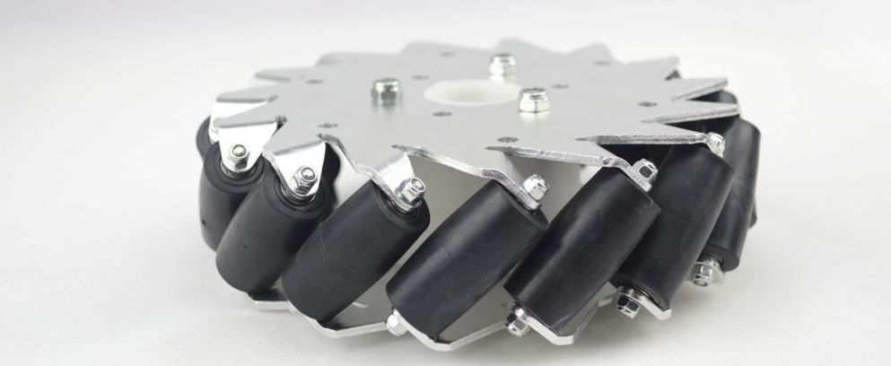 The 152mm Mecanum wheel supposed to work with other 3 Mecanum wheel(2 right,1 left). The mecanum wheels have some rollers mounted along its circumstance and the rubber rollers to avoid slip. Each roller has two bearings allow the wheel to move smoothly and easily in any direction.