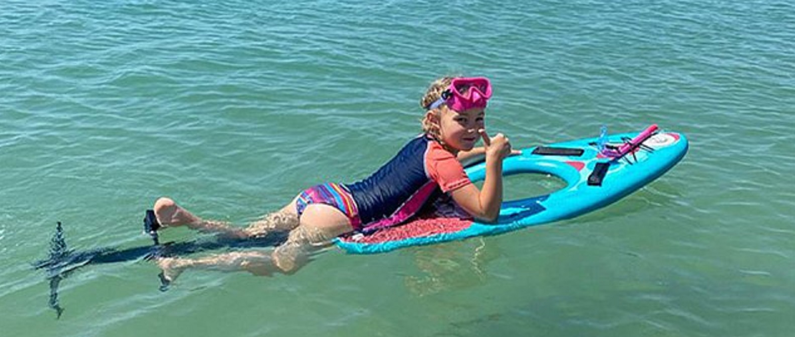 Als je jonge ontdekkingsreiziger even wil uitrusten, hoeft hij niet naar de kust te zwemmen om uit te rusten - hij kan gewoon in het water blijven en de plank als steun gebruiken.