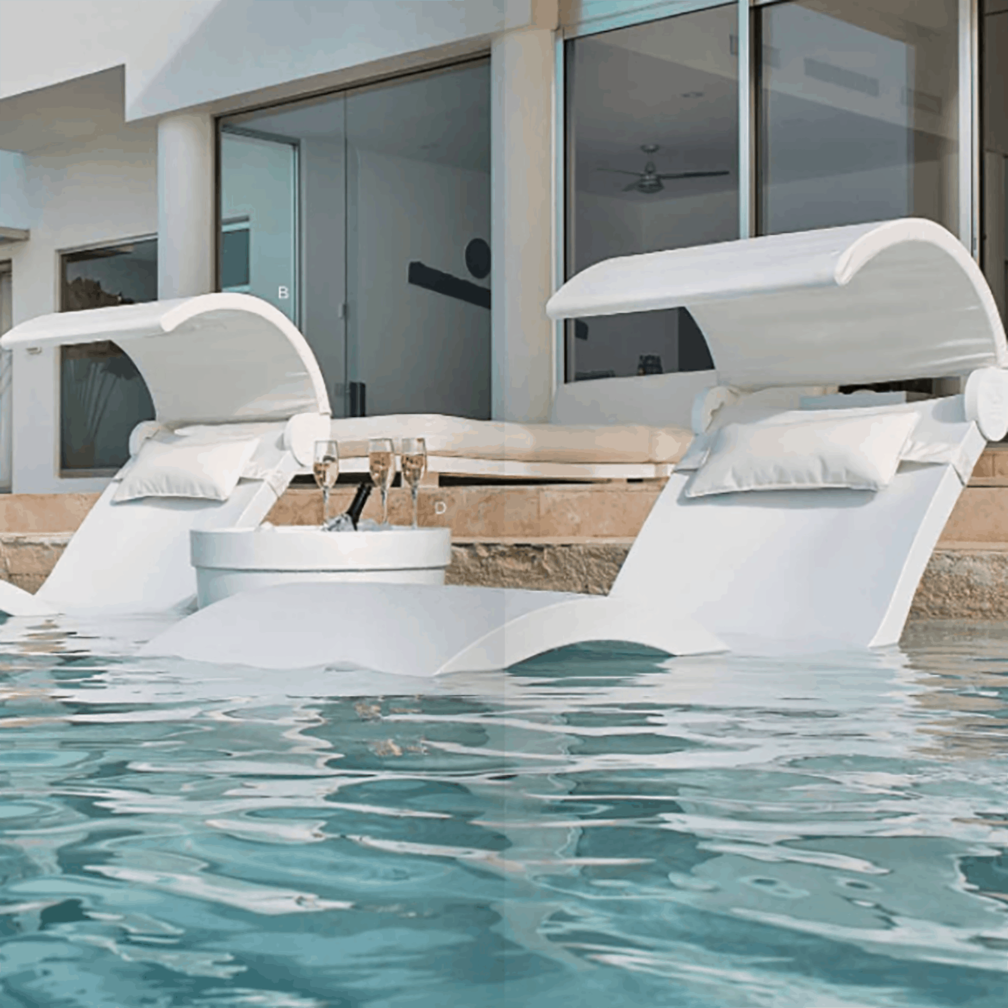 De Chaise Shade is ontworpen als eenvoudig aan- en uitschuifbaar hulpstuk en kan tijdens het zwembad worden gebruikt voor zowel de Signature Chaise als de Chaise Deep-ligstoelen.