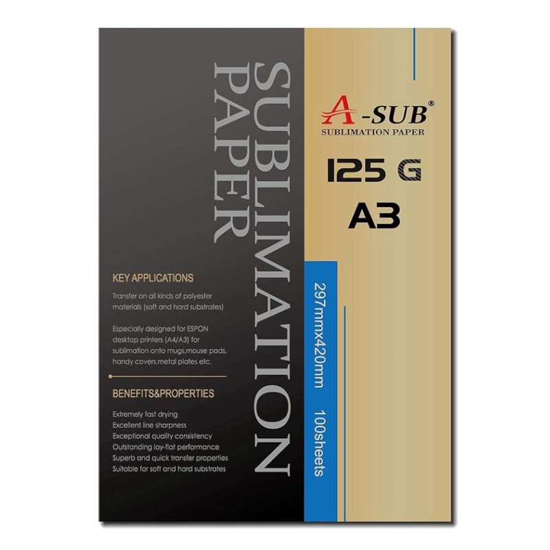 Sublimatie Papier A3 is speciaal ontwikkeld om een ​​uitstekende kleur weergave te bieden. Geschikt voor een breed scala aan sublimatie producten en textiel. Dit sublimatie papier is speciaal behandeld om ervoor te zorgen dat het droog en altijd klaar is voor gebruik op een witte polyester ondergrond.
