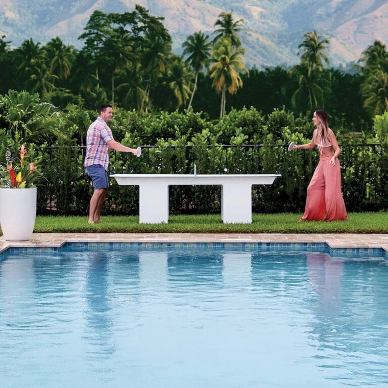 Met een verborgen flesopener en geïntegreerde bekerhouders kun je van elk moment genieten. Bovendien kan het tafeltennisnet eenvoudig worden verwijderd om de tafel naadloos om te bouwen voor een ontspannen diner in de buitenlucht.