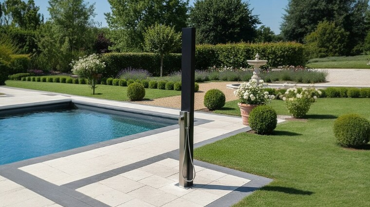 De solardouche Venus heeft een mengkraan met één hendel aan de voorkant van de kolom waarmee de temperatuur kan worden geregeld.