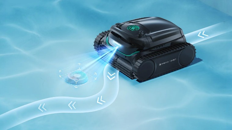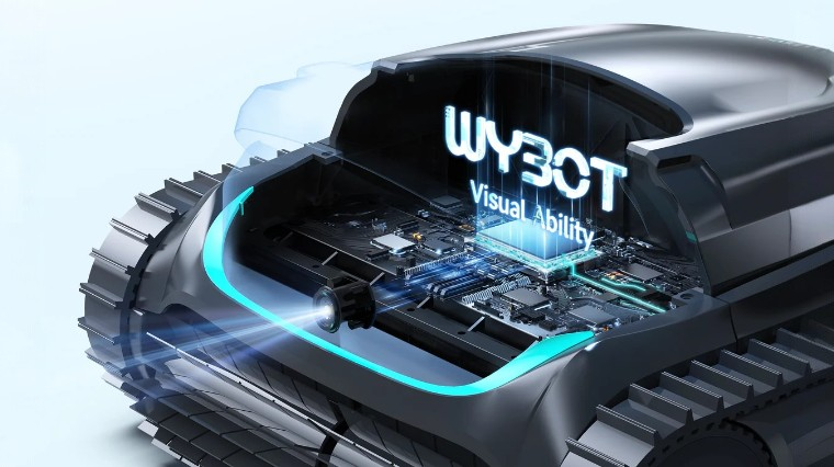 De Wybot M2 Vision draadloze zwembadrobot reinigt de bodem, wanden en waterlijn van het zwembad en is voorzien van een nieuwe functie: een groothoek-AI-camera aan de voorzijde. Deze scant de ruimte voor zich, waardoor de stofzuiger zich kan richten op vuile plekken in het zwembad. Dit bespaart aanzienlijk batterijvermogen en verkort de reinigingstijd.