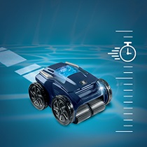 Uitgerust met het "Sensor Nav System", identificeert de ALPHA iQ reiniger de kenmerken van het zwembad om zijn bewegingen en reinigingstijd te optimaliseren. De druksensor beheert effectief de beklimming van wanden en de reiniging van de waterlijn, afhankelijk van de diepte van het zwembad.