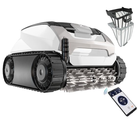 Deze zwembadrobot met filtersysteem is uitgerust met een dual filter van 100µ en 150µ van 4 liter en is via de bovenzijde te bereiken.