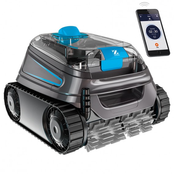 Bovendien wordt uw mobiele telefoon met de nieuwe Zodiac RA-applicatie en via Bluetooth- verbinding, beschikbaar in de App Store en Google Play, een afstandsbediening waarmee u: de robot kunt besturen , de starttijd kunt programmeren, verschillende reinigingscycli kunt programmeren , definieer de vorm van het zwembad, ontvang alarmen zoals wanneer het filter van de robot vol is, of raadpleeg relevante informatie over de status van de zwembadreiniger, zoals bedrijfsuren, spanning, stroom, enz.