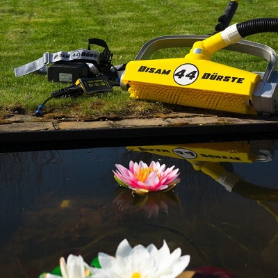 De BISAM 44 is de bodemreiniger bij uitstek voor uw zwemvijver en geschikt om grotere oppervlakten vlot en efficiënt te reinigen dankzij een werkbreedte van 44cm. Door de roterende cylindrische borstel wordt de aangegroeide biomassa vlot losgemaakt en via de aanzuigopening verwijdert.